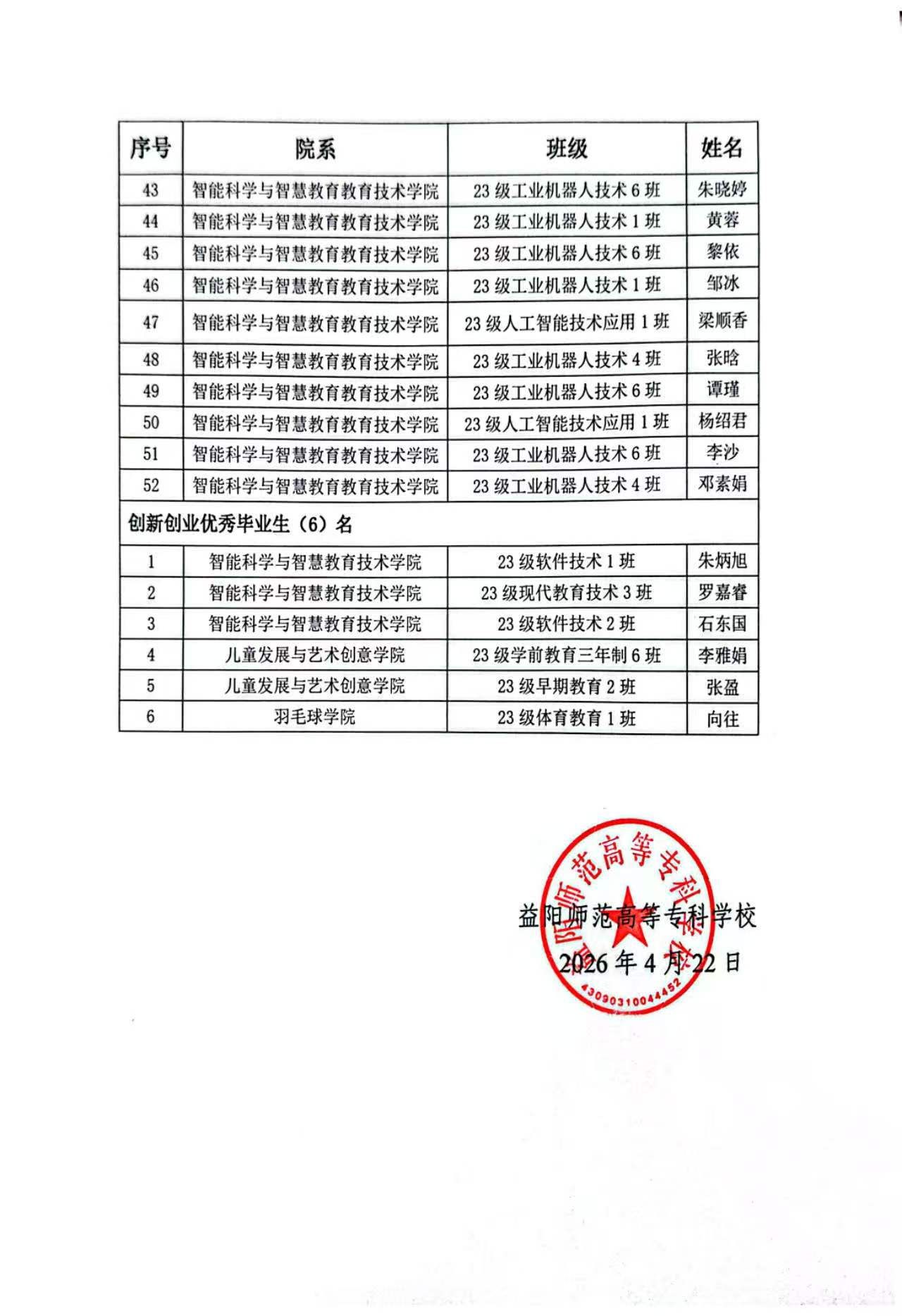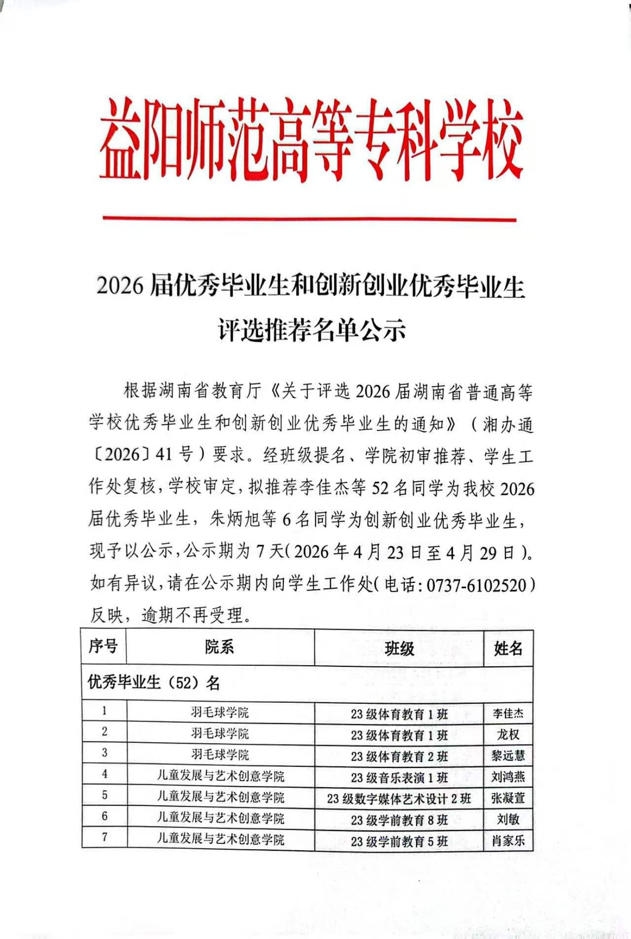 2026届优秀毕业生和创新创业优秀毕业生评选推荐名单公示